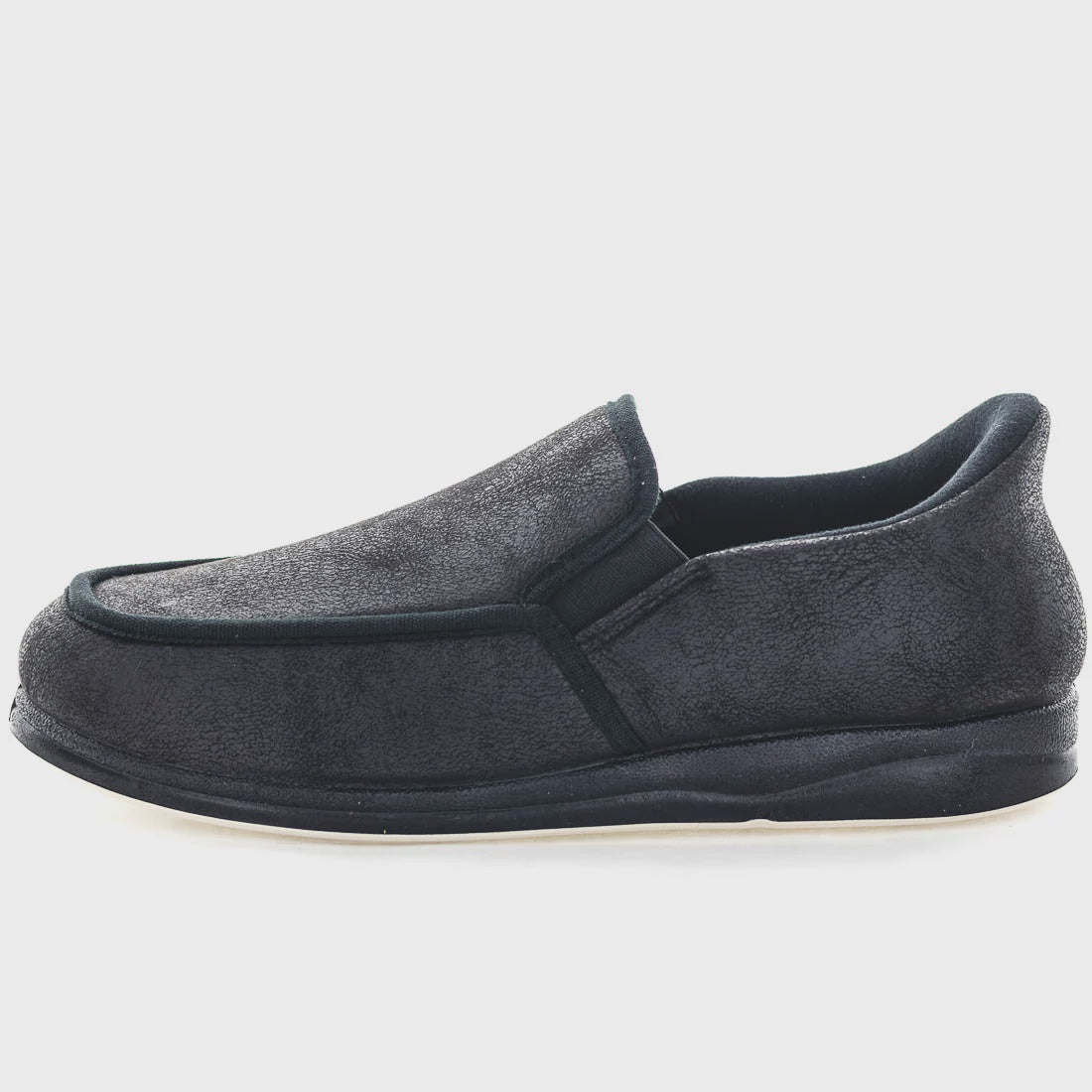 Slip into comfort with Edgar, Men's STEPPINS. Engineered for effortless wear, these slippers feature a mottled PU twin gusset upper that adapts to your foot's natural shape. The supportive heel counter provides stability with every step, while the soft lining and memory foam sock cradle your feet in cushioned comfort. Built to last, the durable and flexible non-marking outsole transitions seamlessly from bedroom to living spaces without leaving marks on your floors. Ideal for everyday indoor wear.